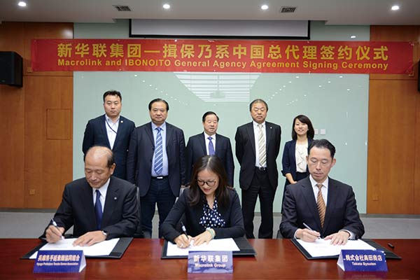 3月27日,集團與日本兵庫縣手延素面協同組合、高田商店株式會社簽訂代理協議,正式成為揖保乃系(手延面)中國大陸地區總代理商。揖保乃系(手延面)是日本第一面條品牌,有130年的發展歷史。集團董事局主席兼總裁傅軍、高級副總裁兼酒業與食品事業部總裁馮建軍、貿易部總監胡暉等出席簽約儀式。