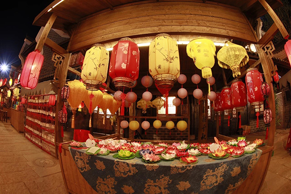 “中秋之夜”晚會(huì)以“天涯共此時(shí)”為主題,精心設(shè)置了主、副兩個(gè)舞臺。主舞臺以銅官窯古鎮(zhèn)水秀景觀為主體。波光粼粼的湖水、絢爛多彩的燈光、皎潔明亮的月色,恰到好處的倒影,共同營造出“水天一色,水月中秋”的詩情畫意。副舞臺設(shè)置在熱鬧的銅官美食街。街上有吹糖人、拉洋片、捏泥人等非物質(zhì)文化遺產(chǎn)項(xiàng)目以及舞火龍、手工月餅、花燈等中秋節(jié)傳統(tǒng)民俗,還原古人過中秋的情節(jié)。銅官窯古鎮(zhèn)優(yōu)美的意境、深厚的文化底蘊(yùn)與中秋佳節(jié)花好月圓人團(tuán)圓的氣氛完美融合,相得益彰。