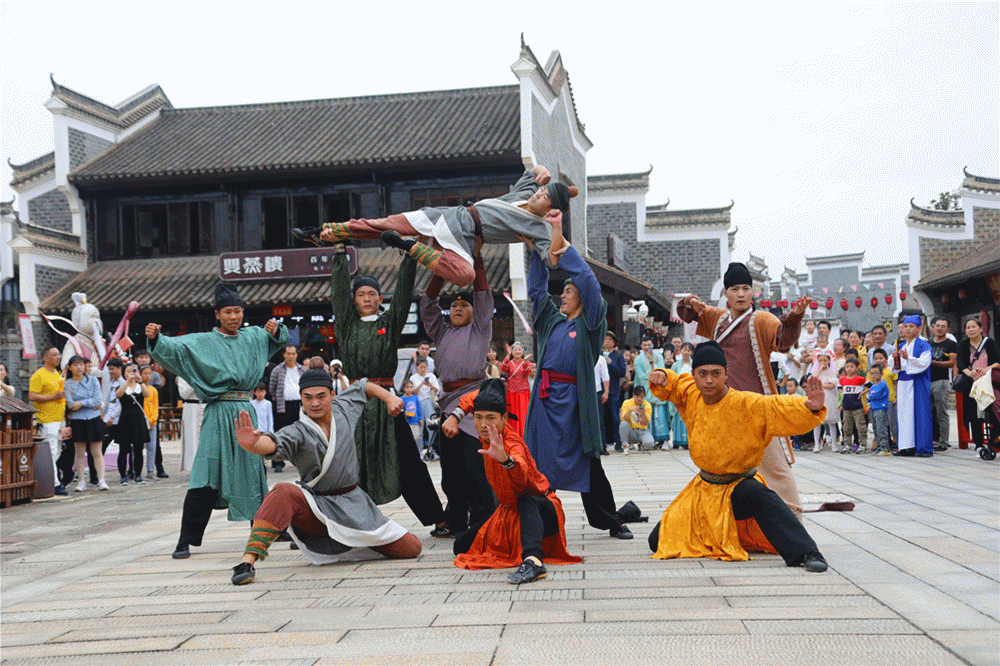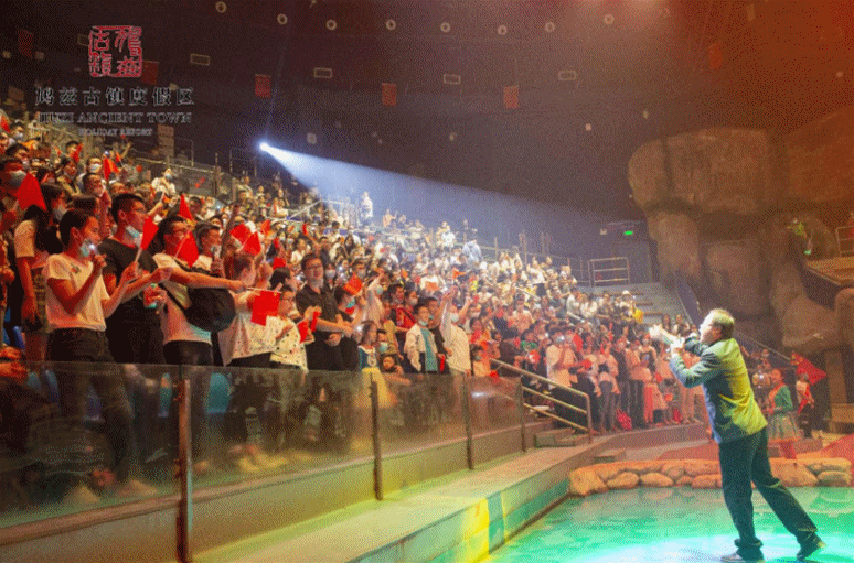鳩茲古鎮還推出了水下升旗、千人國歌、民俗演藝天塔舞獅、《徽商往事》大劇和川劇水下變臉等系列節目,不僅為游客提供了精彩的表演,而且為節日增添了喜慶氣氛。