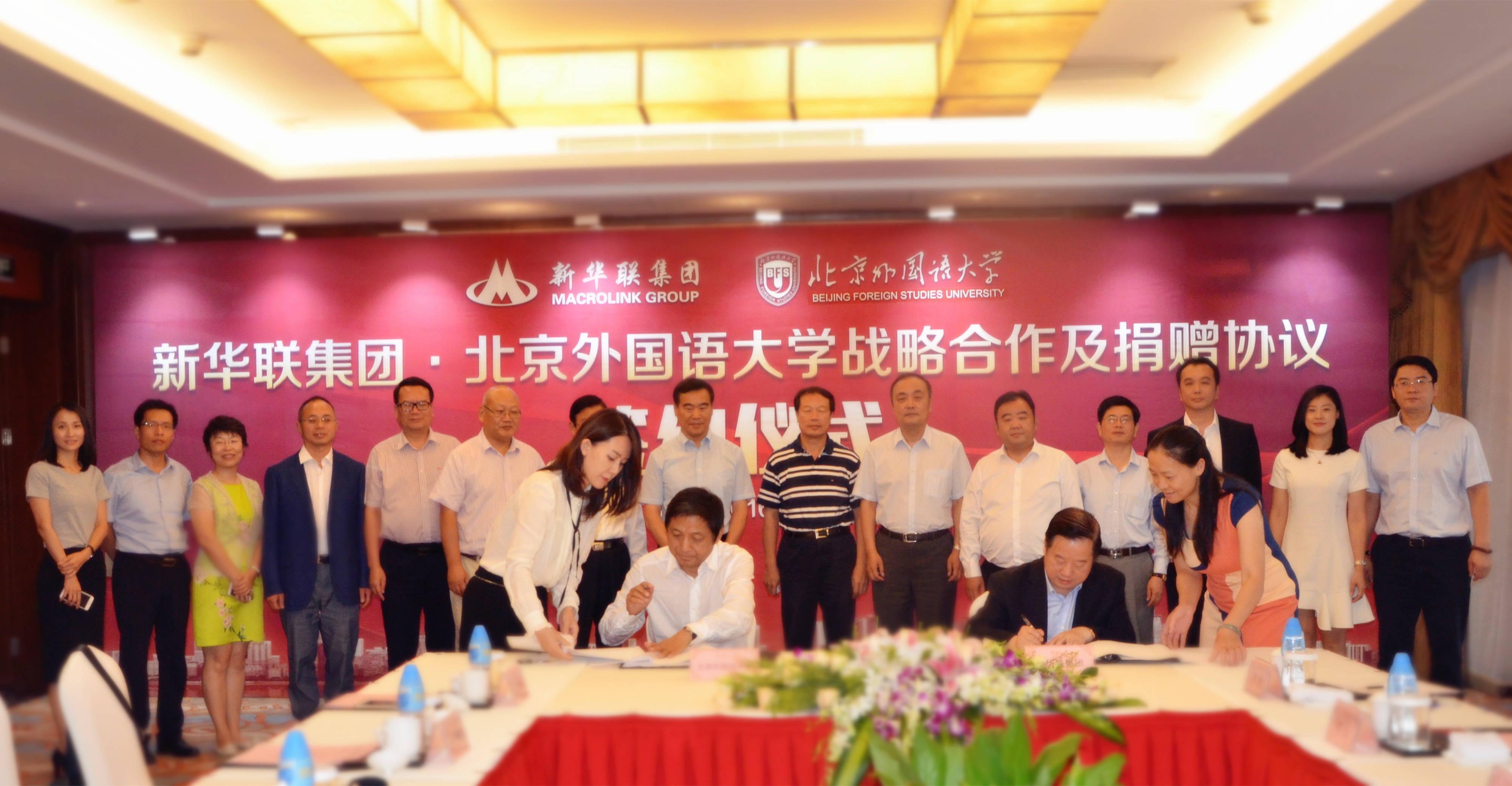 8月31日,新華聯(lián)集團(tuán)與北京外國(guó)語大學(xué)戰(zhàn)略合作簽約儀式在北京麗景灣國(guó)際酒店舉行。新華聯(lián)集團(tuán)董事局主席兼總裁傅軍,北京外國(guó)語大學(xué)校長(zhǎng)彭龍,北京外國(guó)語大學(xué)黨委副書記趙旻,北京外國(guó)語大學(xué)副校長(zhǎng)閆國(guó)華,北京外國(guó)語大學(xué)教育基金會(huì)理事長(zhǎng)楊學(xué)義,北京外國(guó)語大學(xué)校長(zhǎng)助理、綜合改革辦公室主任楊建國(guó),北京外國(guó)語大學(xué)校長(zhǎng)助理、北外附校校長(zhǎng)林衛(wèi)民,新華聯(lián)集團(tuán)黨委書記、副總裁兼新華聯(lián)文化旅游發(fā)展股份有限公司董事長(zhǎng)丁偉,新華聯(lián)集團(tuán)副總裁兼新華聯(lián)文化旅游發(fā)展股份有限公司董事總經(jīng)理蘇波,新華聯(lián)集團(tuán)助理總裁楊運(yùn)輝,新華聯(lián)文化旅游發(fā)展股份有限公司副總經(jīng)理杭冠宇、劉巖、劉華明,教育事業(yè)部總監(jiān)羅靖等出席簽約儀式。新華聯(lián)集團(tuán)董事局主席兼總裁傅軍,北京外國(guó)語大學(xué)校長(zhǎng)彭龍分別致辭,并代表雙方簽署戰(zhàn)略合作框架協(xié)議。根據(jù)協(xié)議,雙方將本著“優(yōu)勢(shì)互補(bǔ)、互利互贏、共同發(fā)展”的原則,在長(zhǎng)沙、西寧等地開展聯(lián)合辦學(xué),積極發(fā)展基礎(chǔ)教育,打造國(guó)際化的教育平臺(tái)。